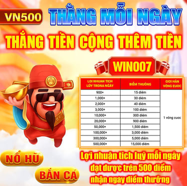 VN500 luôn mang đến cho bạn dịch vụ chuyên nghiệp nhất. Mỗi ngày đều có nhiều khuyến mãi và tặng thưởng hấp dẫn, giúp bạn luôn ngập tràn bất ngờ!